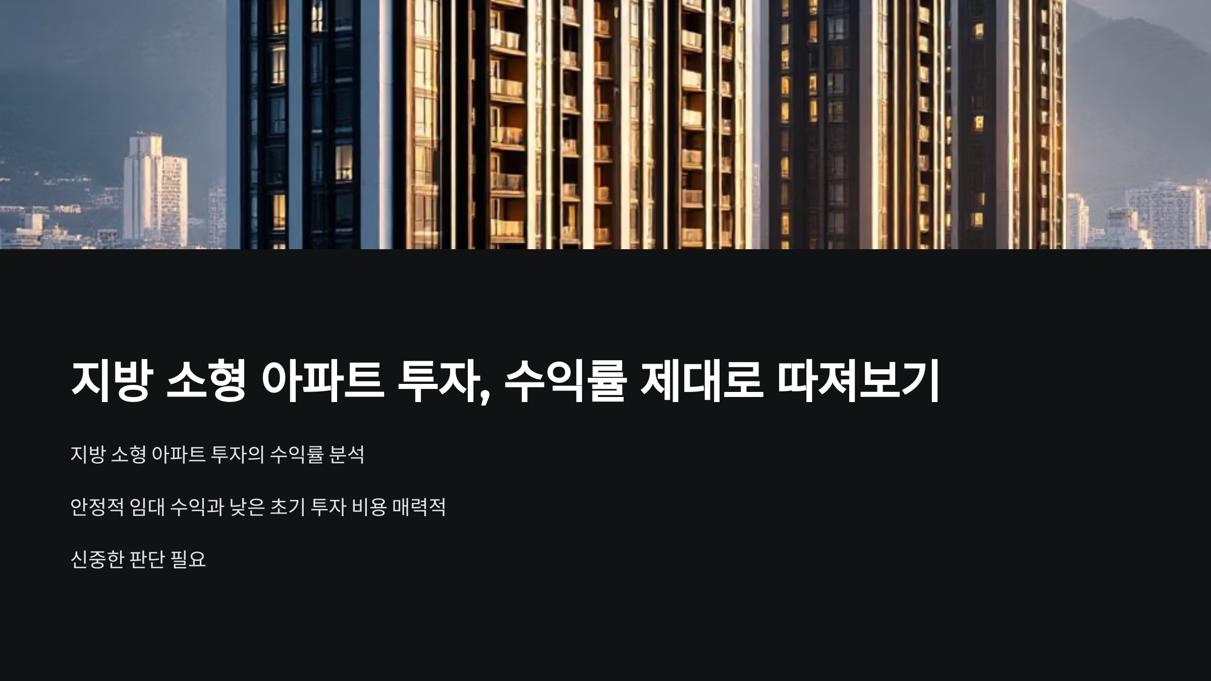 지방 소형 아파트 투자, 수익률 제대로 따져보기